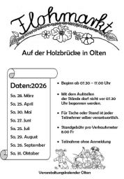 Infos für Aussteller: Pro Stand Fr. 35.-- inkl. Tisch. Für alle Standmieter stehen