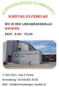 Infos für Aussteller: Pro Stand Fr. 35.-- inkl. Tisch. Für alle Standmieter stehen